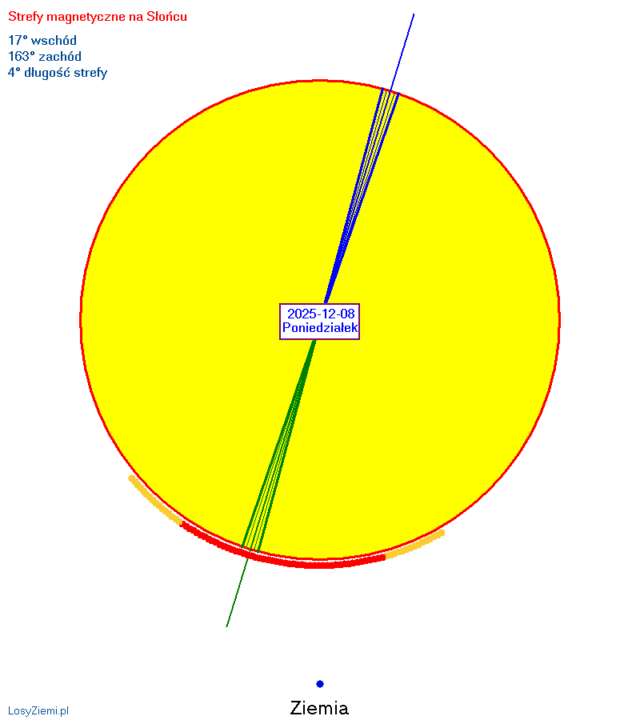 Przypomnę, że w tamtym rejonie tworzy się strefa magnetyczna, o której pisałem, a szczyt będzie miała 8 grudnia. Zobaczcie, jak gwałtownie wzrosła aktywność plam w tym rejonie, gdzie jest maksimum polaryzacji.