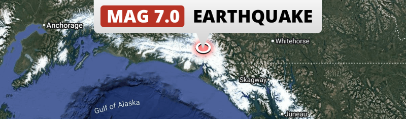 Amerykańska Służba Geologiczna (USGS) podała, że trzęsienie ziemi miało miejsce około 370 km na północny zachód od Juneau na Alasce i 250 km na zachód od Whitehorse w Jukonie.