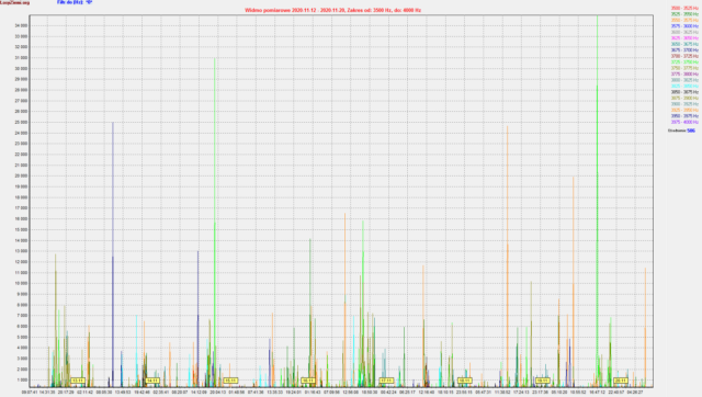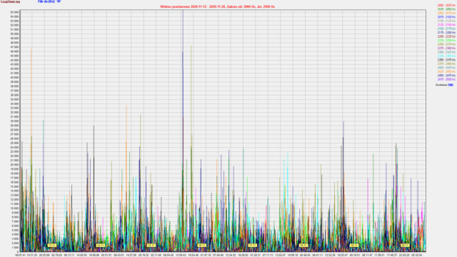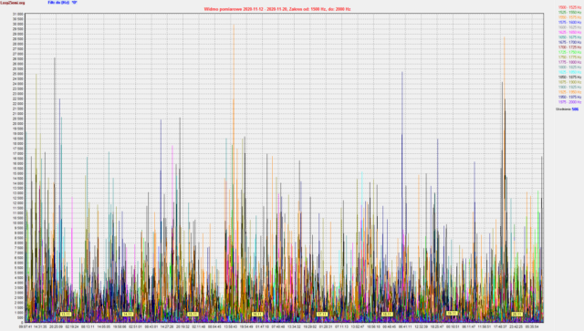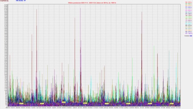 Poniżej częstotliwości składowe ziemskiego pola magnetycznego – FFT (Szybka transformacja Fouriera) dla zakresów do 4 kHz podzielonych po 500 Hz – ostatnie 8 dni.