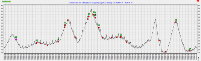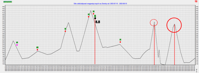 W poprzednich szczytach oddziaływań magnetycznych mieliśmy silne trzęsienia ziemi, więc 9 sierpnia wzrasta prawdopodobieństwo groźnego trzęsienia ziemi, 12 sierpnia prawdopodobieństwo będzie duże. Groźnie może być od Kamczatki po Japonię. Średniej siły oddziaływania wystąpią 8-9 sierpnia, a silne 12 sierpniapisałem o tym.