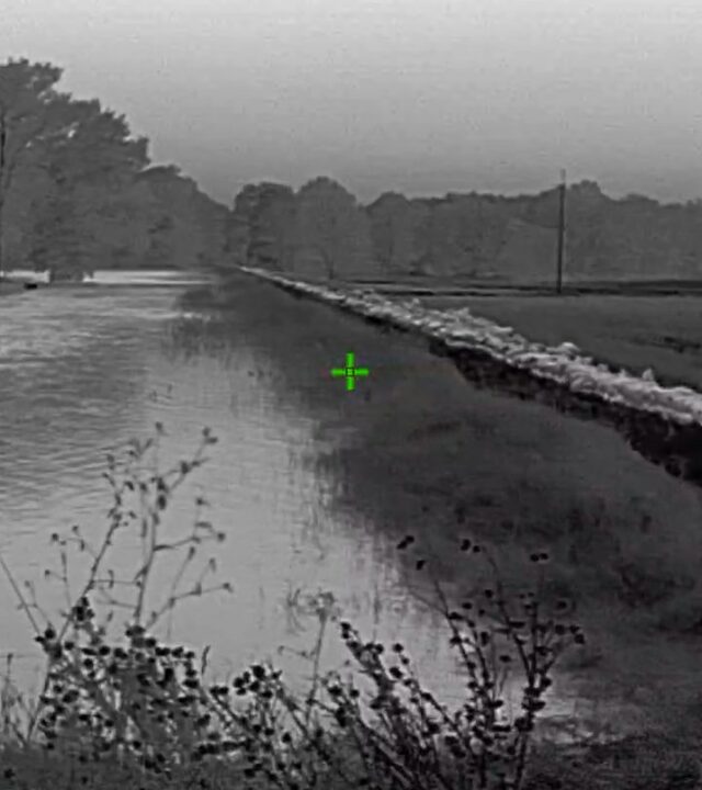 Ale tutaj też widać efekt odbijania fal od tafli wody. Dla mnie mylące z początku było to, że cieplejsze obiekty są ciemniejsze, bo taki tryb w lunecie termowizyjnej to był negatyw z tego co pamiętam. Domyślnie jest chyba na odwrót.
