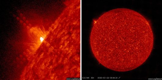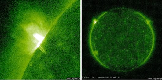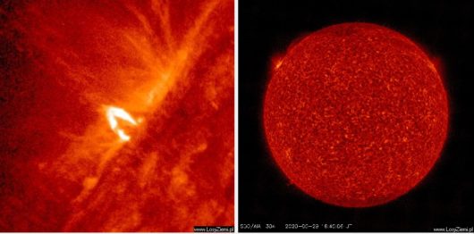 Od prawie doby aktywność plamy na wschodzie jest na podobnym poziomie. Plama ta wygenerowała dwa silne rozbłyski.