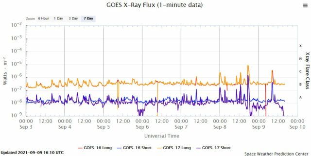 W środę 8 września o godzinie 17:30 UTC z plamy 2866 wystąpił w miarę silny rozbłysk klasy C8.43.