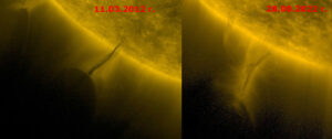 Ponad 10 lat temu, 11 marca 2012 roku na południowym wschodzie Słońca powstała „bańka” z plazmy, generując wiele pytań. Podobną strukturę w podobnym miejscu znów mamy na Słońcu. Zobaczymy, czy wkrótce również efektownie oderwie się od Słońca. Ciekawostką jest to, że dekadę temu struktura ta oderwała się od Słońca w rocznicę silnego trzęsienia ziemi w … Czytaj dalej Podobna struktura na Słońcu wystąpiła ponad 10 lat temu