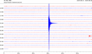 W środę 13 sierpnia o 23:30 pod Żelaznym Mostem w okolicach Polkowic wystąpił bardzo silny wstrząs sejsmiczny o magnitudzie 4.5, jest to energia 98.6 MWh. Według EMSC głębokość wstrząsu wynosiła 3 km, USGS wyliczyło wstrząs na M4.3 i głębokość na 13.3 km. Sejsmometr na terenie Zamku Książ w Wałbrzychu znajduje się w odległości 76 km … Czytaj dalej Polkowice, Polska – Trzęsienie ziemi o magnitudzie 4.5 wystąpiło pod Żelaznym Mostem