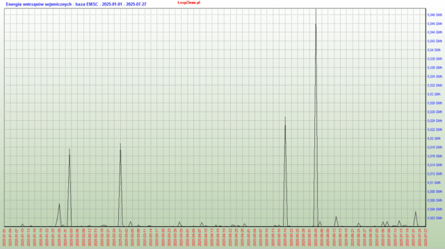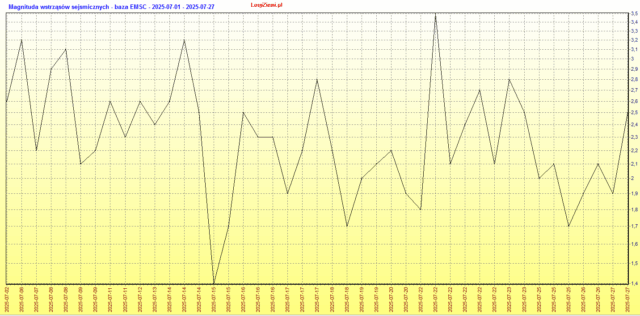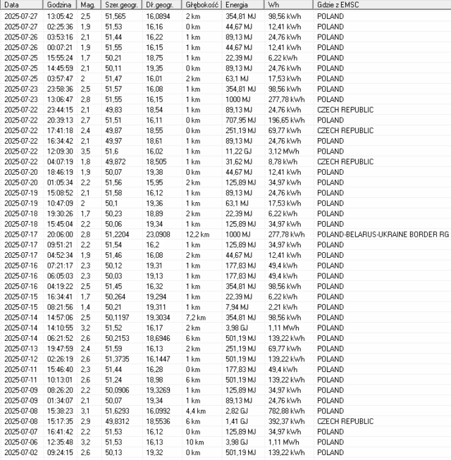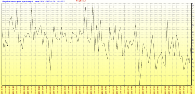Wstrząsy sejsmiczne od 1 stycznia do 27 lipca 2025 roku