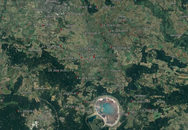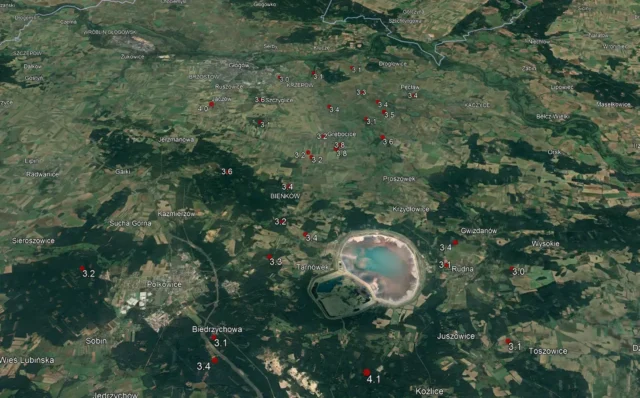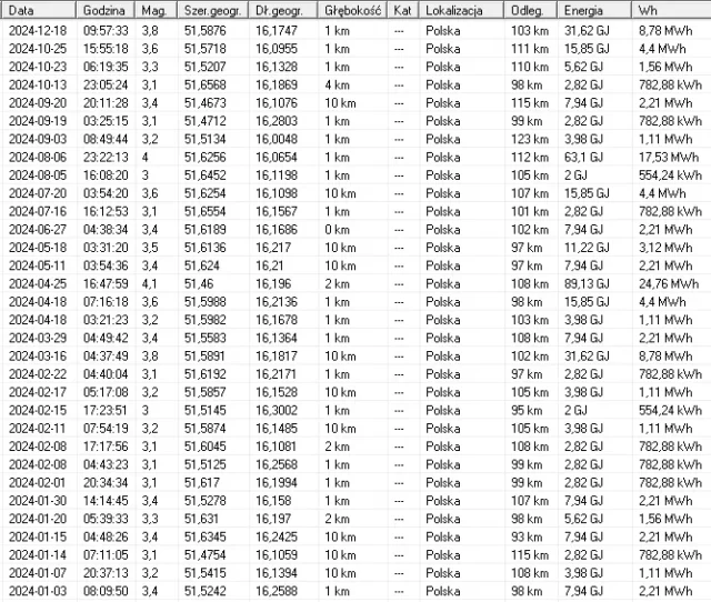 Lista trzęsień ziemi od magnitudy 3.0 od początku 2024 roku w promieniu 15 km od aktualnego.