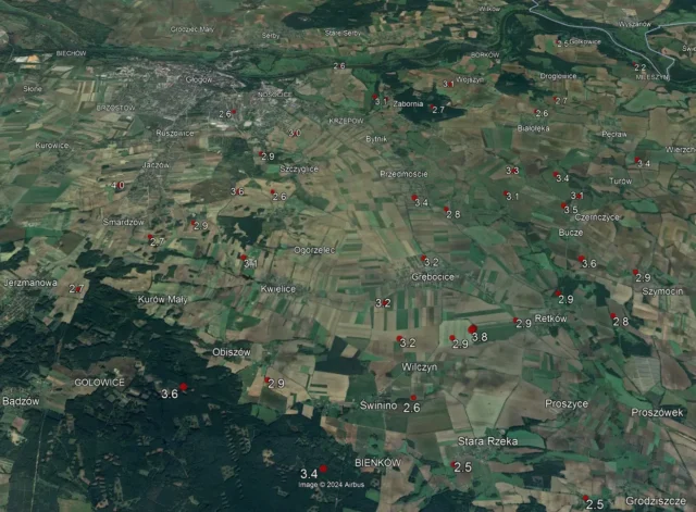 Silny wstrząs sejsmiczny wystąpił w środę 18 grudnia o 10:57 kilka kilometrów od Głogowa, według EMSC magnituda wynosiła 3.8 – energia 8.78 MWh. Był to czwarty najsilniejszy wstrząs sejsmiczny w tym rejonie w 2024 roku.