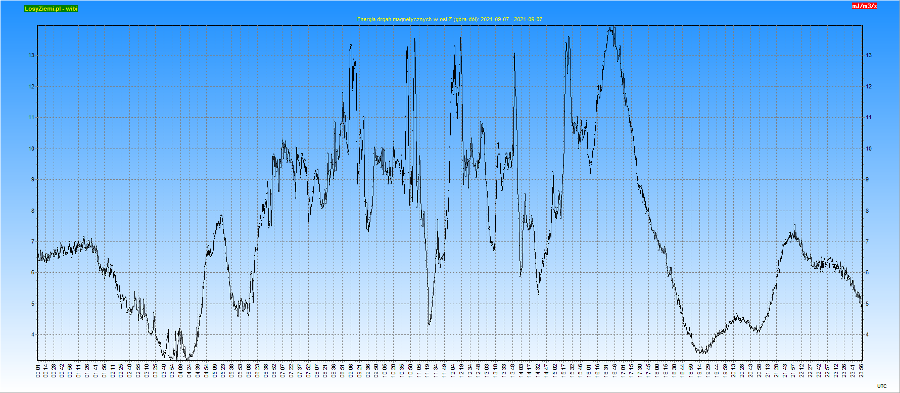 Od wielu lat prowadzę pomiary magnetometrem przy próbkowaniu 75 Hz, z tego wyliczam również energię drgań dla każdej sekundy pomiarów (niebieskie wykresy – uśrednienie minutowe).