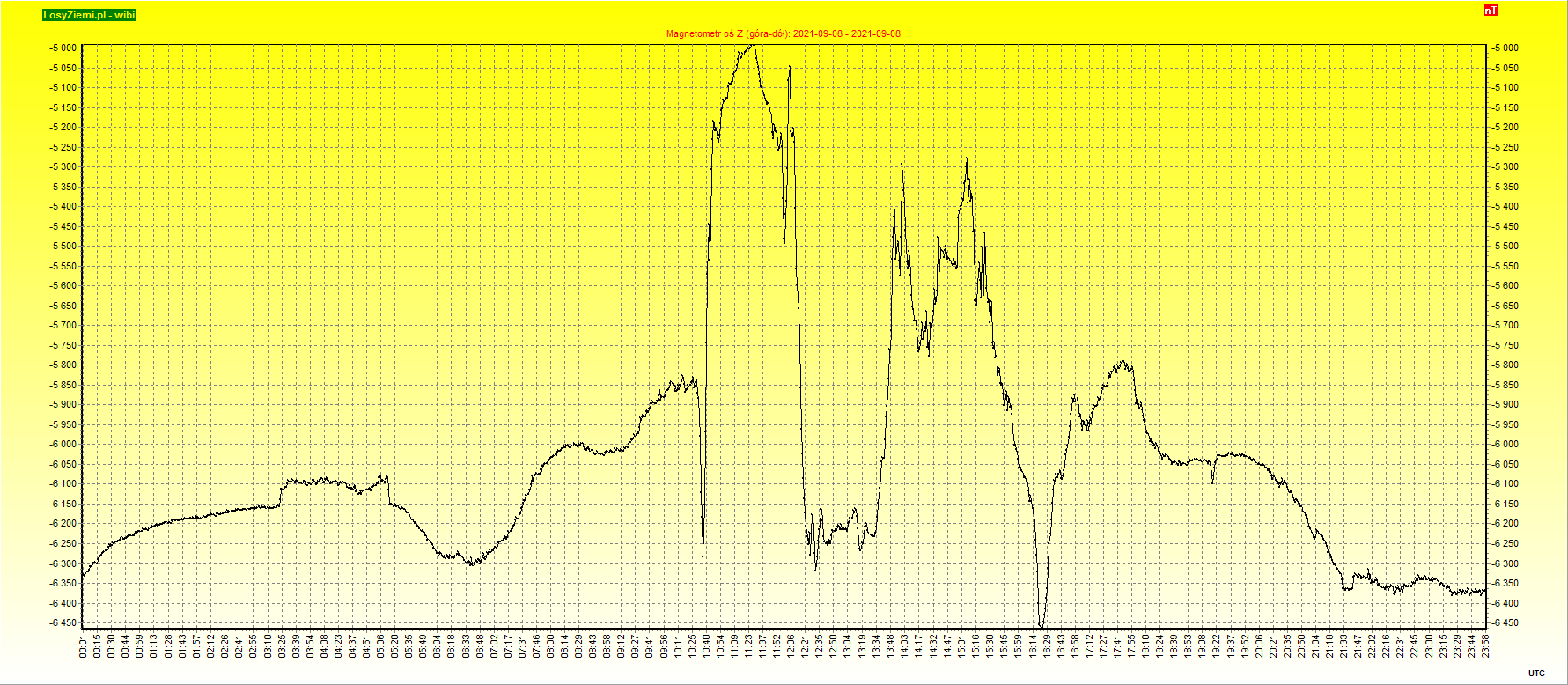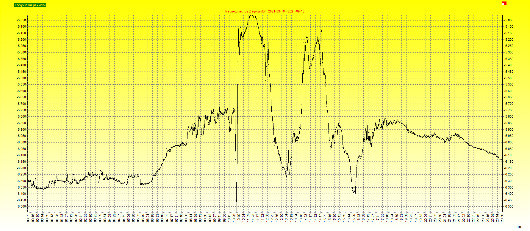 Poniżej znajdują się wykresy z 11 dni pomiarów magnetometrycznych w osi pionowej Z, jest to pomiar drgań pochodzących z jonosfery, a powstałych na skutek oddziaływań magnetycznych w przestrzeni kosmicznej.