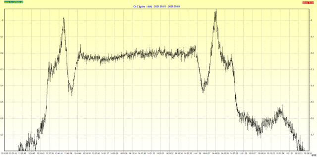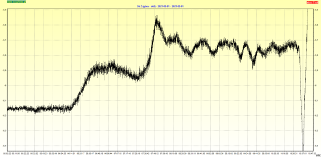 Wczoraj pokazałem Wam pomiary magnetometryczne od 1 do 5 września, dziś zobaczycie te ciekawe zmiany dla 1 września „w powiększeniu”.
