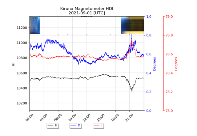 Poniżej magnetometr z Kiruny w Szwecji na 68 stopniu szerokości geograficznej – do porównania z ostatnim fragmentem moich pomiarów, które są na powyższym wykresie.