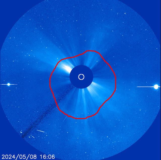 W ostatnich kilkudziesięciu godzinach Słońce wyrzuciło kilka razy plazmę (CME) w stronę Ziemi. W czwartek 9 maja wystąpił bardzo silny rozbłysk klasy X2.3 z plamy 3664 na 24 stopniu zachodnim.