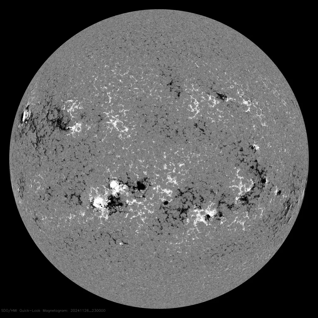 Z powodu braku zdjęć z satelity SDO, nie mamy magnetogramu, który jest najważniejszy do analizy. Ostatni jest z 23-ciej UTC 26 listopada. Musimy sobie sposobem poradzić z nową sytuacją.