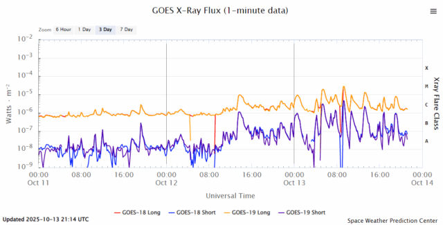 W ostatnich dwóch dniach mocno wzrosła aktywność Słońca, wystąpiły 3 silne rozbłyski klasy M i 4 klasy C powyżej 9.