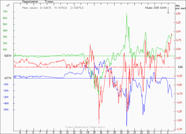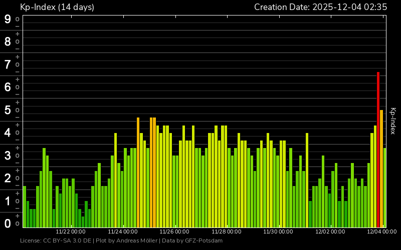 W środę w nocy wystąpiła burza geomagnetyczna wywołana emisją wiatru słonecznego z dziury koronalnej, osiągnęła przez moment osiągnęła poziom G3.