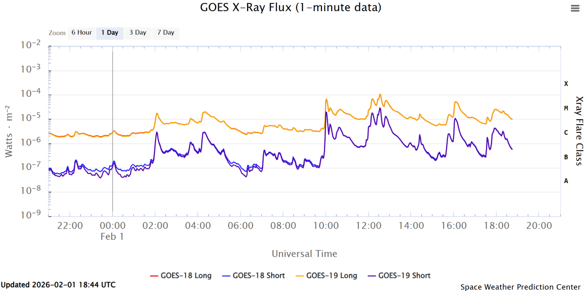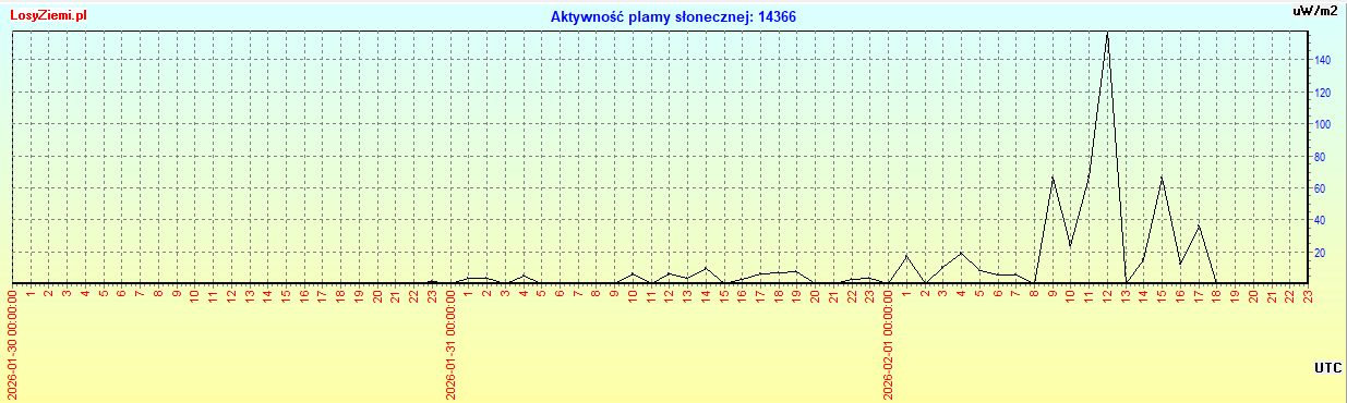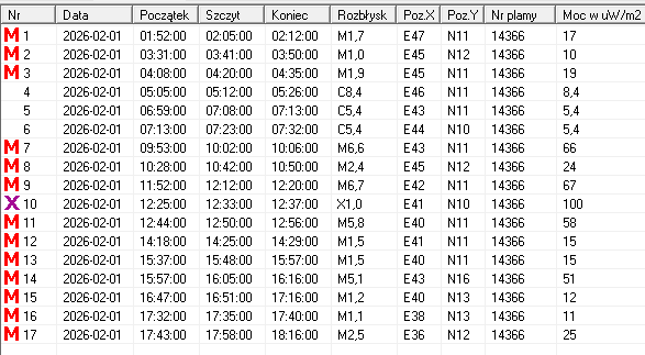 W niedzielę 1 lutego o 13:33 czasu w Polsce na Słońcu plama 4366 wygenerowała bardzo silny rozbłysk klasy X1.0, od 3:05 do 13:33 wygenerowała 6 silnych rozbłysków klasy M, z czego najsilniejszy to M6.7. Po rozbłysku klasy X wygenerowała jeszcze 7 silnych rozbłysków klasy M.