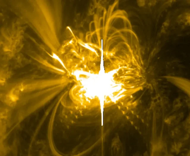 Poniżej widać chwilowe zmiany magnetyczne w miejscu rozbłysku, co jest dość rzadkie