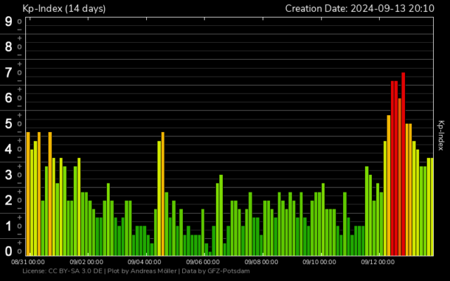 W czwartek 12 września mieliśmy silną, ale krótką burzę geomagnetyczną. Burza wystąpiła kilkanaście godzin wcześniej, niż było w prognozie.