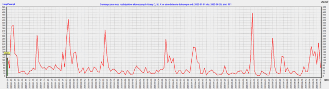 Sumaryczna moc rozbłysków x-Ray w 2025 roku