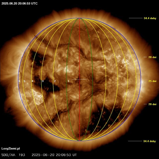 Zgodnie z tym, co już Wam pisałem, poprzednia dziura koronalna emitowała w stronie Ziemi elektrony i wiatr słoneczny do 20 czerwca.