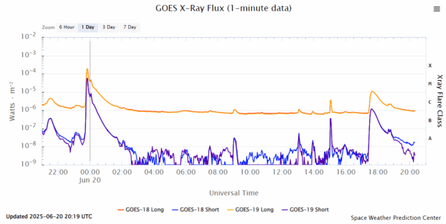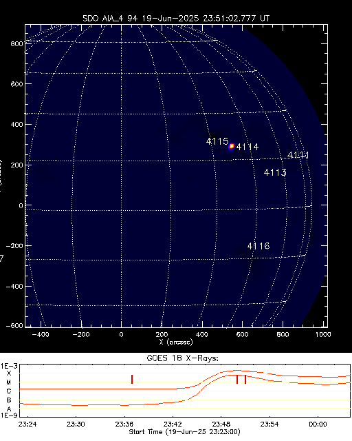 W piątek 20 czerwca o 1:50 czasu w Polsce (UTC+2) wystąpił bardzo silny rozbłysk słoneczny klasy X1.9 z plamy 4114 na 38 stopniu zachodnim.