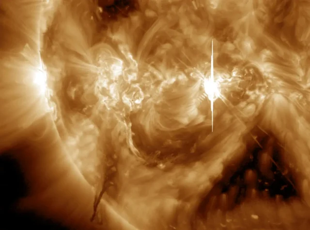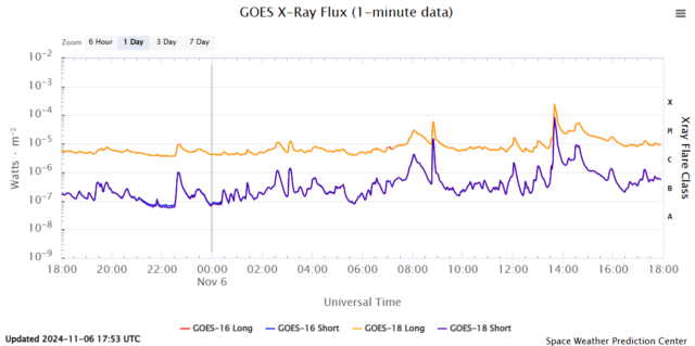 Bardzo silny rozbłysk słoneczny klasy X2.3 wystąpił 6 listopada ze szczytem o 14:40 czasu w Polsce na 14 stopniu wschodnim.