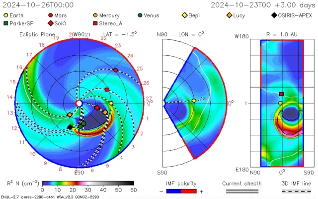 Według prognoz chmura plazmy (CME) może zahaczyć Ziemię w nocy z piątku na sobotę (25/26 października).