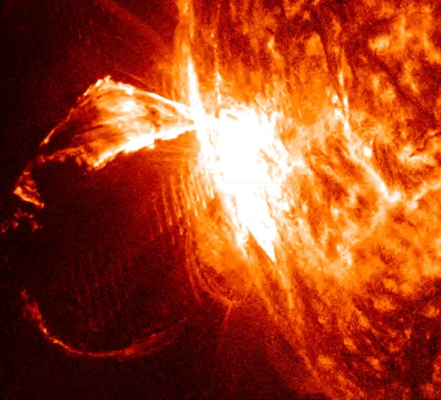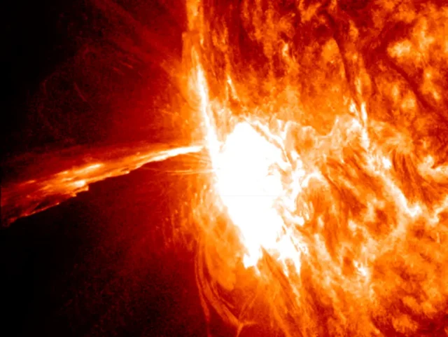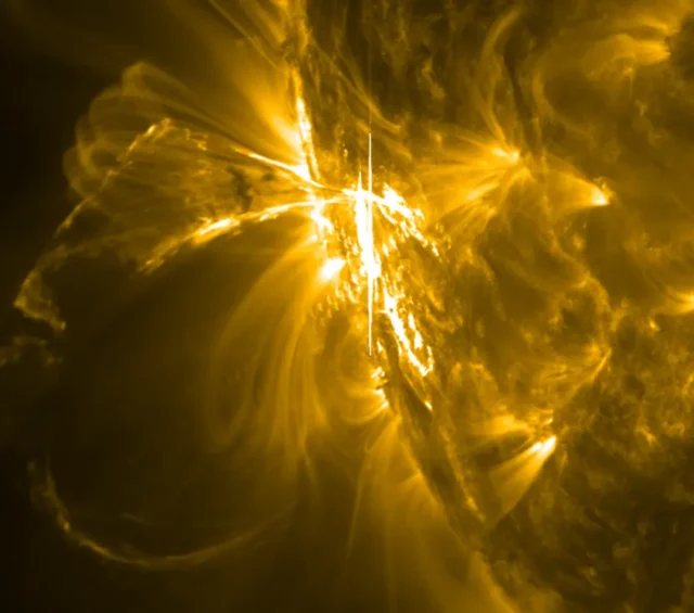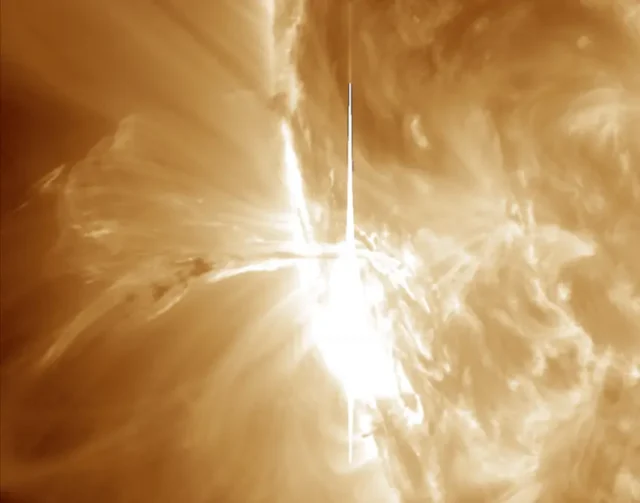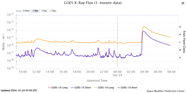 Bardzo silny rozbłysk słoneczny klasy X3.3 wystąpił 24 października ze szczytem o 5:57 czasu w Polsce na 76 stopniu wschodnim.