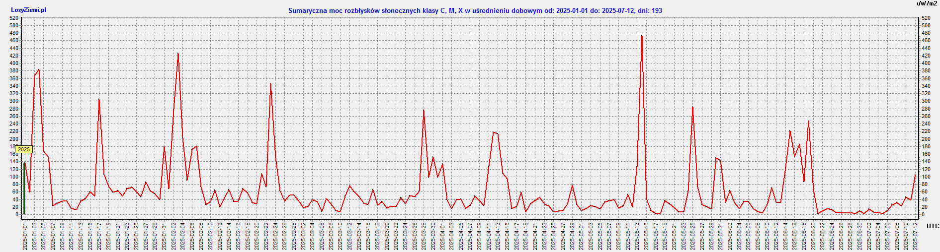 Sumaryczna moc rozbłysków od początku roku