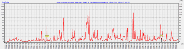 W piątek 21 lutego o 23:48 w pozycji na wprost Ziemi (E11) pojawiła się plama o numerze 14000 (4000), numeracja plam dostępna w bazie NASA jest od 1975 roku.