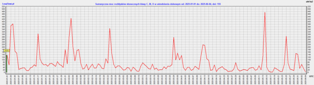 Sumaryczna moc rozbłysków od początku 2025 roku