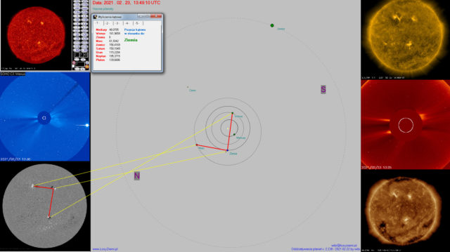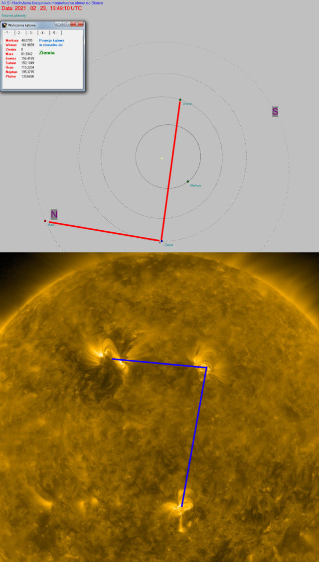 Na Słońcu mamy aktualnie 3 plamy, które tworzą literę L. Dwie z nich powstały 22 lutego. W Układzie Słonecznym Mars Ziemia i Wenus tworzą podobny układ z podobnym kątem i proporcjami.