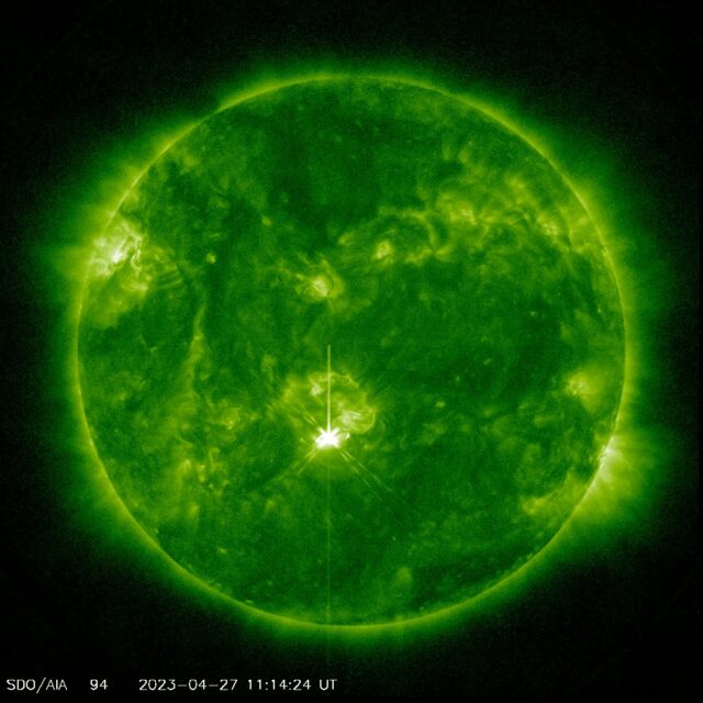 Silny rozbłysk klasy M1.8 ze szczytem o 13:14 wystąpił z plamy 3288 będącej w pozycji na wprost Ziemi, gwałtowny wzrost aktywności nastąpił zgodnie z wyliczeniami w trakcie wychodzenia z silnej strefy magnetycznej.