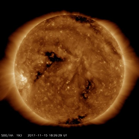 W czwartek, 16 listopada na wprost Ziemi znajdzie się dziura koronalna, która przyczyni się do wzrostu burzy jonosferycznej, która już twa.