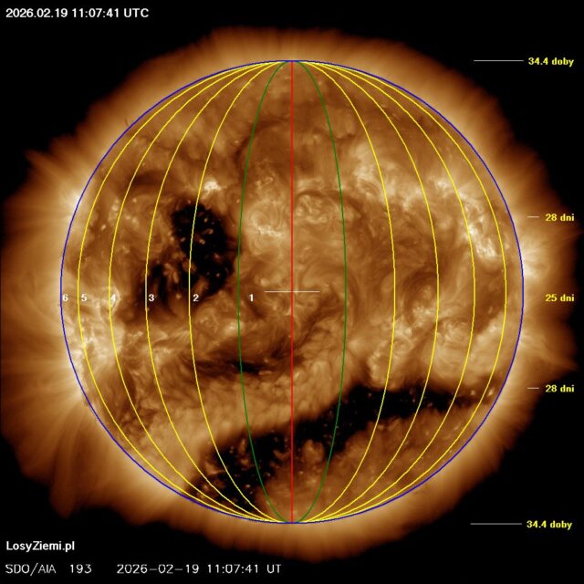 Dziura koronalna dokładnie na wprost Ziemi znajdzie się 21 lutego, wtedy wystąpi maksimum emisji elektronów.