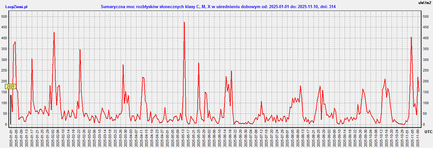 Plama wygenerowała już 8 silnych rozbłysków klasy M i 3 bardzo silne klasy X, a także 83 klasy C.
