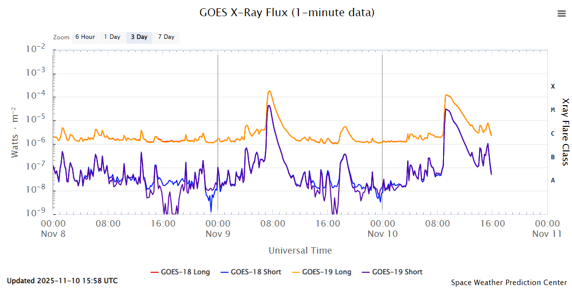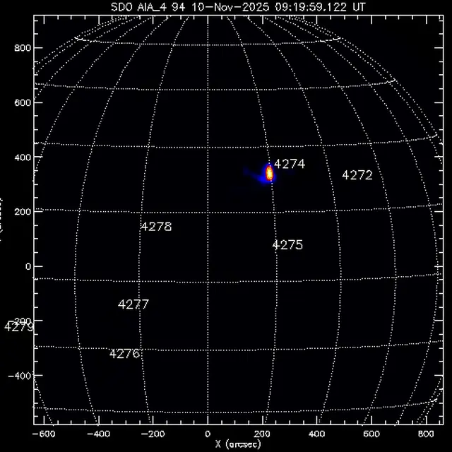 Rozbłysk wygenerował kolejny wyrzut plazmy w kierunku Ziemi, która według prognozy NASA dotrze do Ziemi również 12 listopada, jak z poprzedniego wyrzutu klasy X1.8, o którym pisałem.