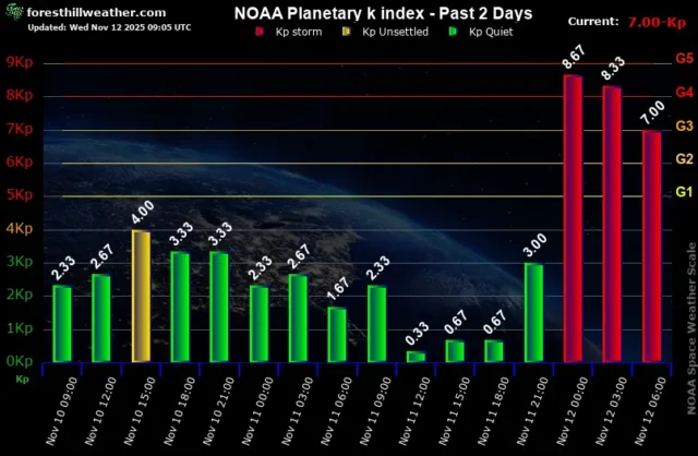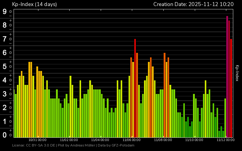 Index Kp osiągnął 9, czyli mieliśmy burzę G5 – nadzwyczajnie silną.