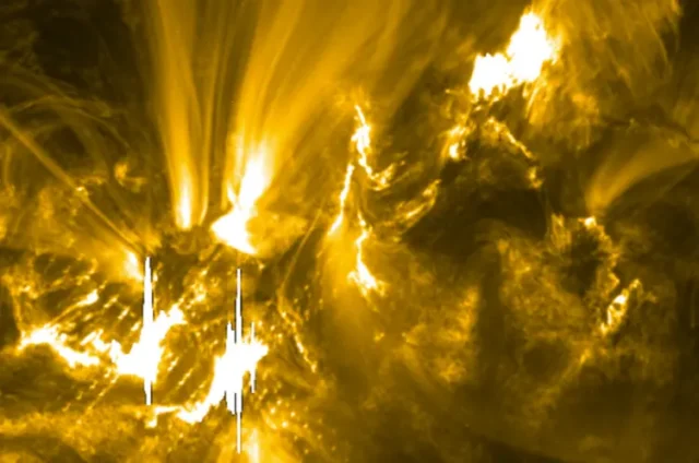 Niecałe 40 minut przed rozbłyskiem wystąpiło kilka mniejszych rozbłysków w kilku punktach jednocześnie.