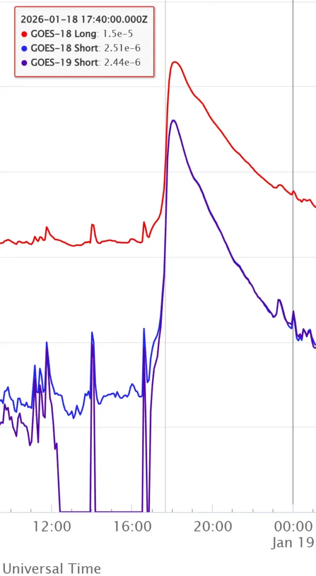 W niedzielę 18 stycznia o 18:09 UTC na Słońcu wystąpił bardzo silny rozbłysk klasy X1.9.