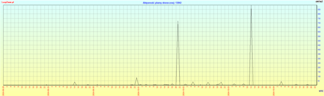 Plama wygenerowała 12 silnych rozbłysków klasy M i 2 wyjątkowo silne klasy X.