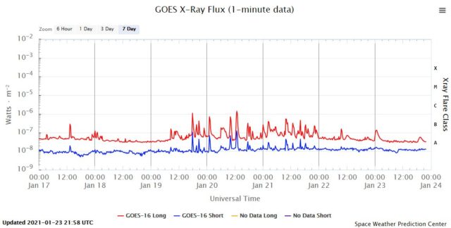 Aktywność słoneczna z ostatnich 7 dni.