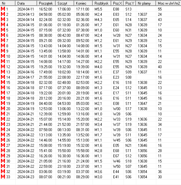 Poniżej lista trzęsień ziemi klasy M i X od 10 kwietnia