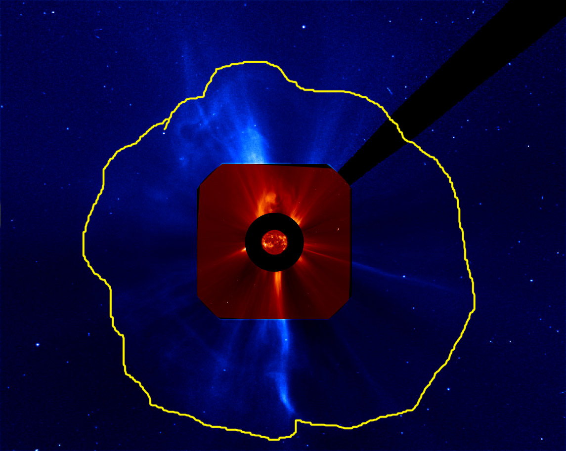 Na filmach można zaobserwować niewielką różnicę czasu między wyrzutem plazmy na północy tarczy Słońca od strony Ziemi, a pojawieniem się halo z plazmy oraz gęstej struktury na północy.