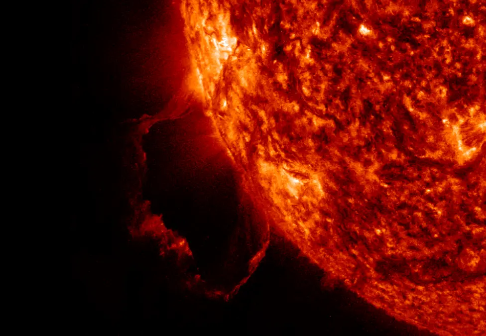 W środę 20 sierpnia około 7-tej polskiego czasu na dalekim wschodzie Słońca, pod równikiem oderwał się bardzo duży łuk plazmy.
