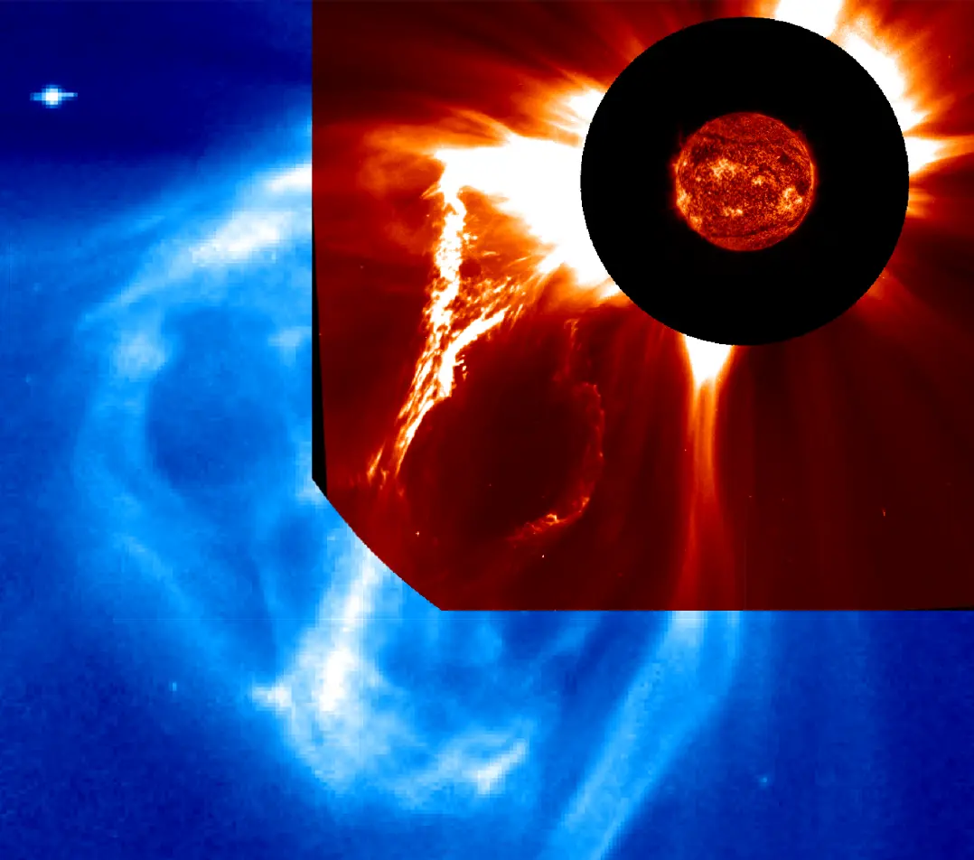 Zaledwie dwie godziny później wyrzucona plazma była dobrze widoczna na obrazach z satelity SOHO LASCO C2 i C3.