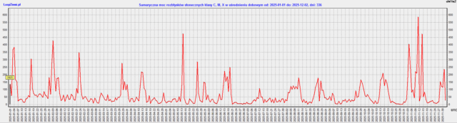 Szczyt średniej siły strefy magnetycznej wystąpi w poniedziałek 8 grudnia na zaledwie 17 stopniu wschodnim oraz na 163 stopniu zachodnim. Długość strefy może wynieść zaledwie 4 stopnie, ale miejsce wystąpienia może być groźne w przypadku rozbłysków x-Ray i wyrzutów plazmy (CME).