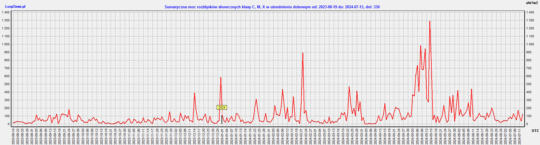 W sobotę 13 lipca wystąpił silny rozbłysk klasy M5.3 z plamy 3738 na 41 stopniu zachodnim.