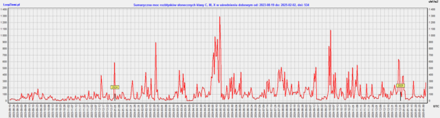 Szczyt silnej strefy magnetycznej wystąpi we wtorek 4 lutego na 11 stopniu wschodnim oraz na 169 stopniu zachodnim. Długość strefy może wynosić 6 stopni. Strefy tworzą się na kilka dni przed szczytami, ich polaryzacja słabnie przez kilka dni po szczytach. W przypadku silnych stref nawet do 6 dni. 9 lutego na wprost Ziemi wystąpi średniej siły strefa magnetyczna.
